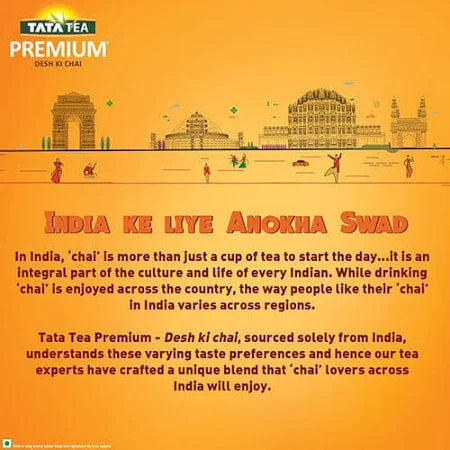 The Tata Tea Premium in a large 1 kg pack is one of India's most popular blended leaf teas, cherished for its consistent quality and distinctive taste that captures the essence of India.This blend is often sourced from select gardens across the country, aiming to deliver a rich aroma, a strong, brisk flavor, and a satisfying color in every cup.It is specifically processed to create the perfect balance sought by tea enthusiasts for their everyday morning and evening cups.